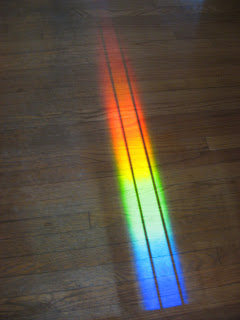 These pictures are part two of my Shadows & Light. I have a prism in my window, and the afternoon light makes for a wonderful display of color. The shadows within the rainbow are created from a gate across the doorway.